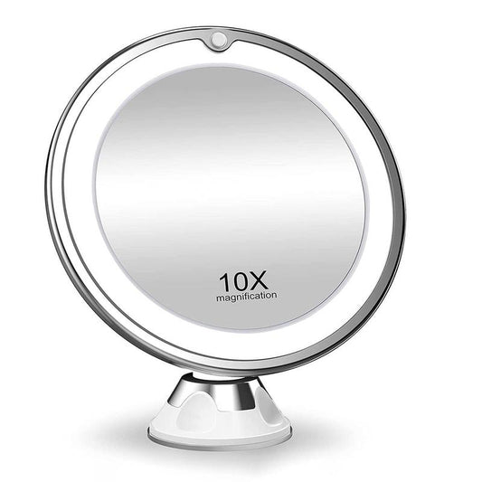 Compact 10X Magnification Dual-Sided LED Lighted Travel Makeup Mirror