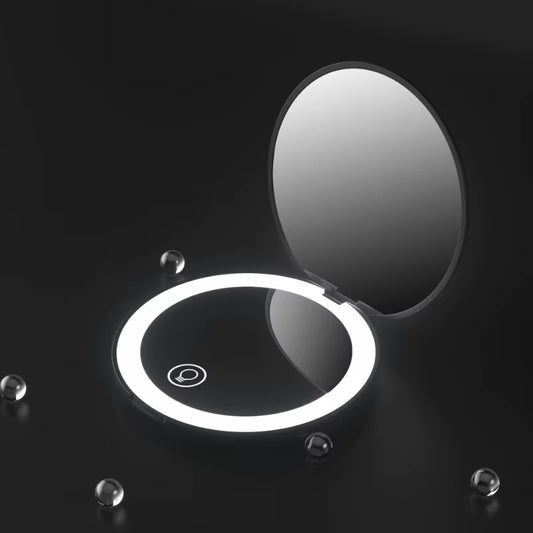 LED Portable Makeup Mirror - Double-Sided Compact Design with Integrated Lighting